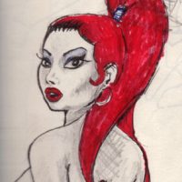 When i tried to design the main character for future comics and i wanted it to be the prettiest woman i could draw, so that however hard the work is, it will be nice to do. This drawing must have been made in 1991 when i was a young lad – not even having finished art school.