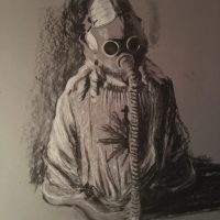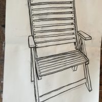 You are looking through a window in which you see a mirror on the wall reflecting the back of the block. But the window itself reflects the hallway i am in (when i drew this) and the door to the classroom with a coat hanging. So you see stuff through the darker parts of reflections and it was quite a challenge, in terms of ‘what needs to be focussed?’, ‘How does the perspective work here?’ etc.