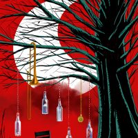 I asked them to give me their back stage passes from over the years to make a chain for the little devil and i used more of those on the inside design. I have to say i really like it that purists don’t find them ‘Klezmer’ enough – they are very interesting musicians and very interesting individuals as well. I feel lucky I was asked for all their covers ever after this little devil.